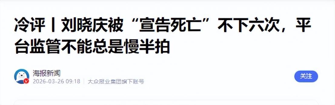 海报新闻|冷评|刘晓庆被“宣告死一火”不下六次,平台监管不成老是慢半拍