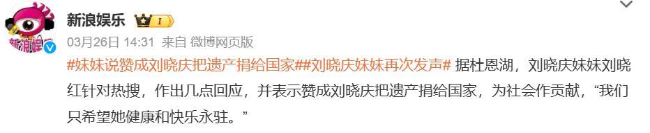 临了,刘晓红暗示讴歌刘晓庆将遗产捐给国度,为社会作念孝顺。
