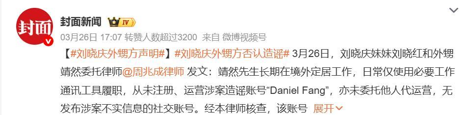 封面新闻|刘晓庆外甥方声明