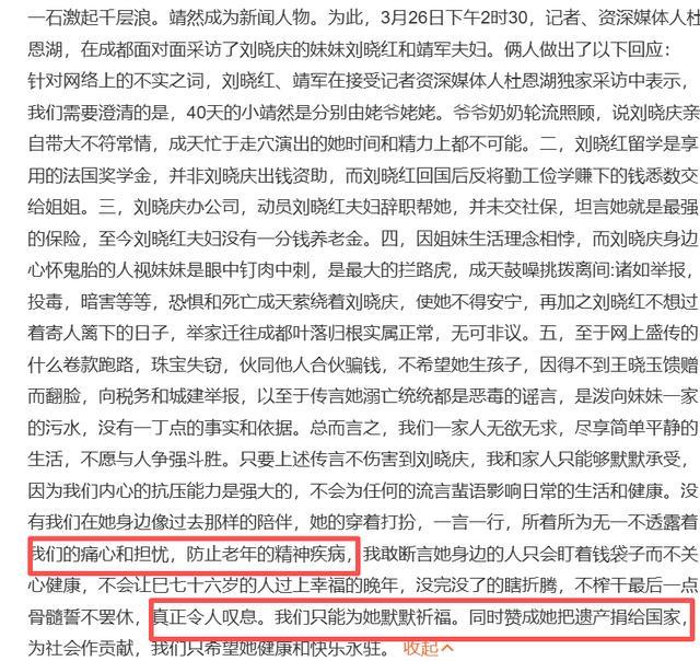一石激起千层浪,她的妹妹刘晓红转眼发布声明复兴三大争议。